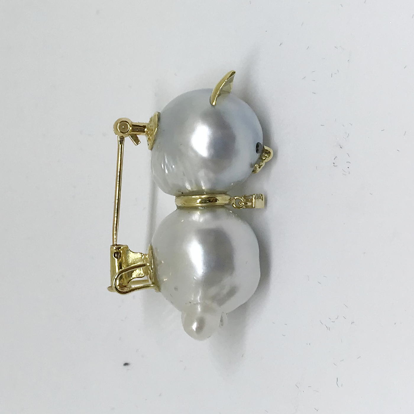 真珠以外の部分にはK18を使用しており、目の部分にはブラックダイヤモンドを使用しております。